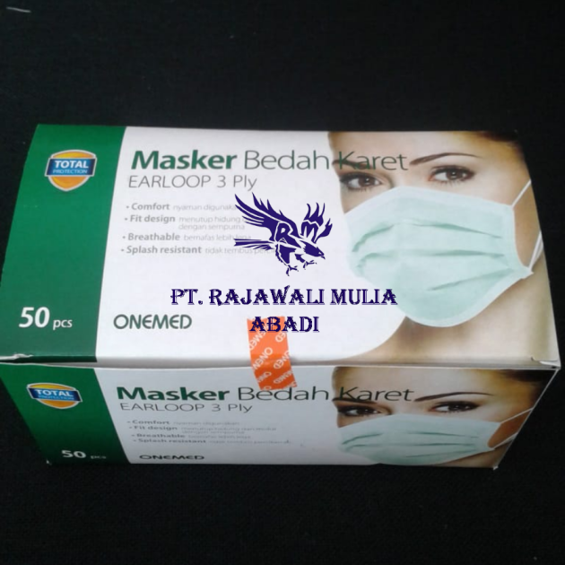 OneMed Face Mask, Masker Bedah 3 Ply Earloop, Surgical Mask 50 per box